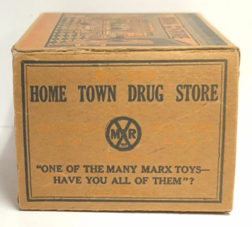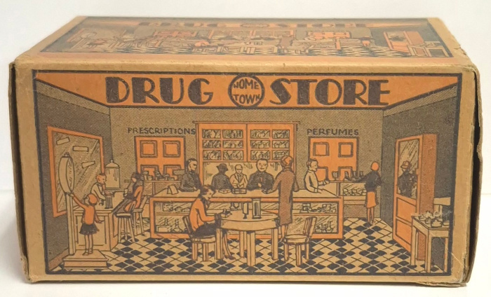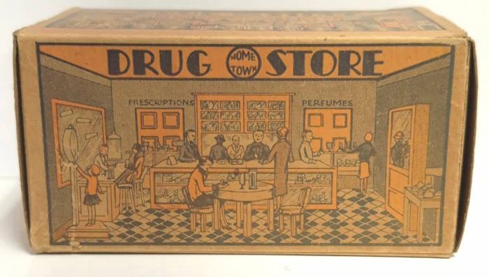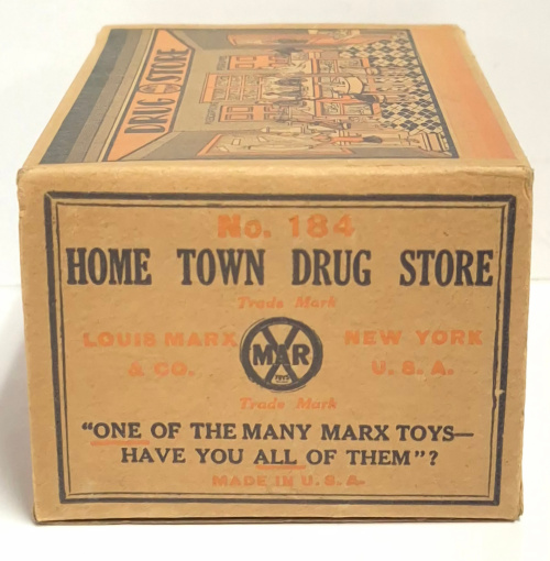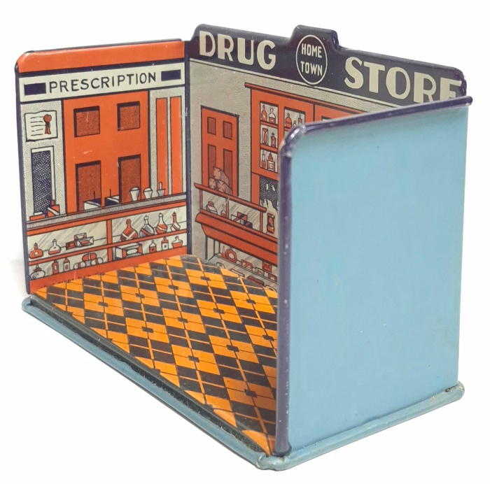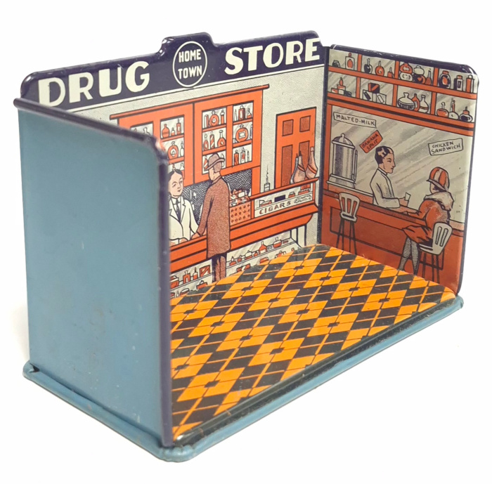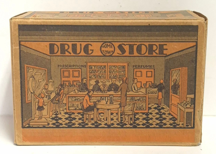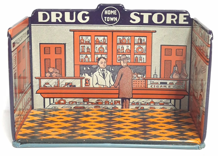 1930’s Marx Tin Litho Home Town Series Drug Store Play Scene Diorama with Box