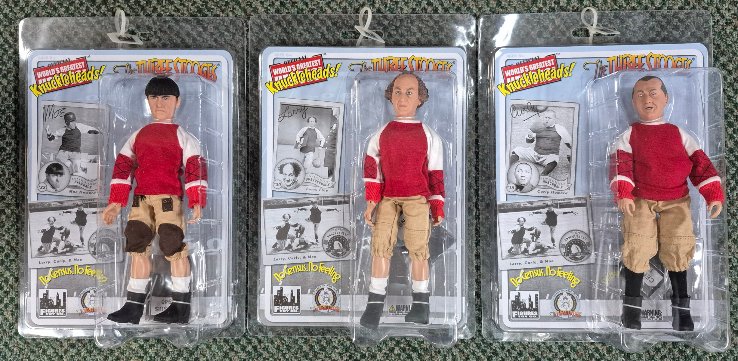 Figures Toy Co. The Three Stooges No Census, No Feeling Set of Three Action Figures: Mint on Card