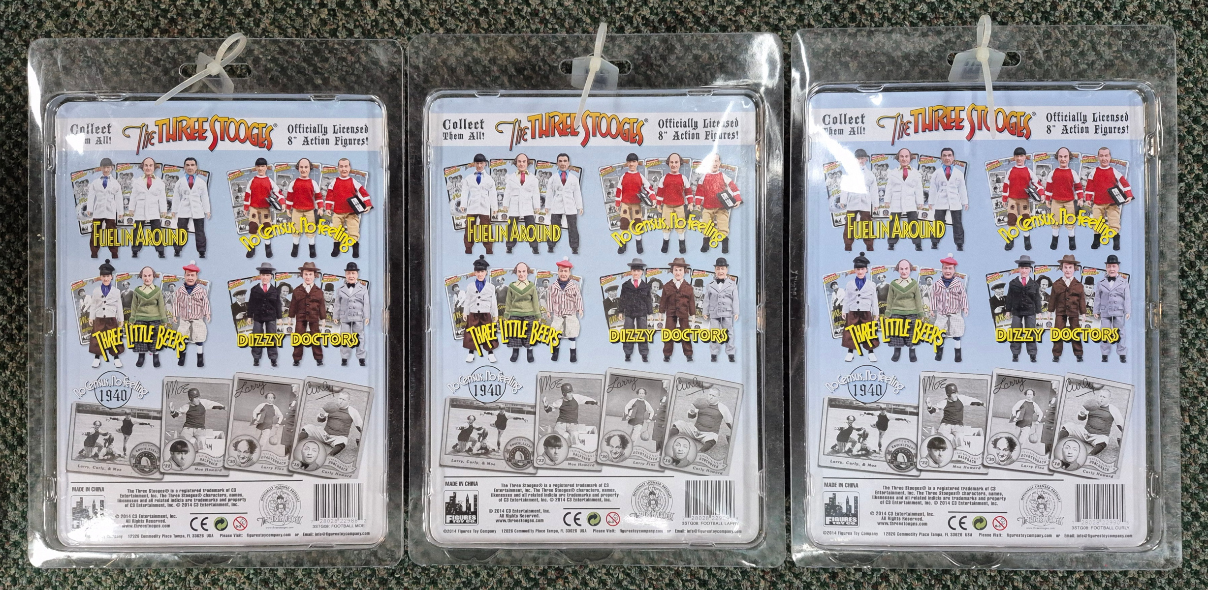 A complete set of all three figures: Larry, Curly, and Moe!