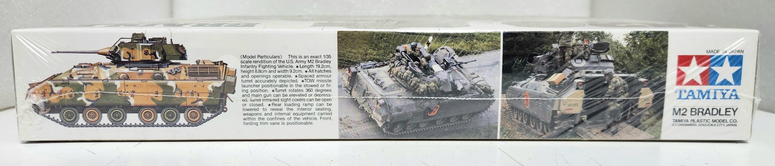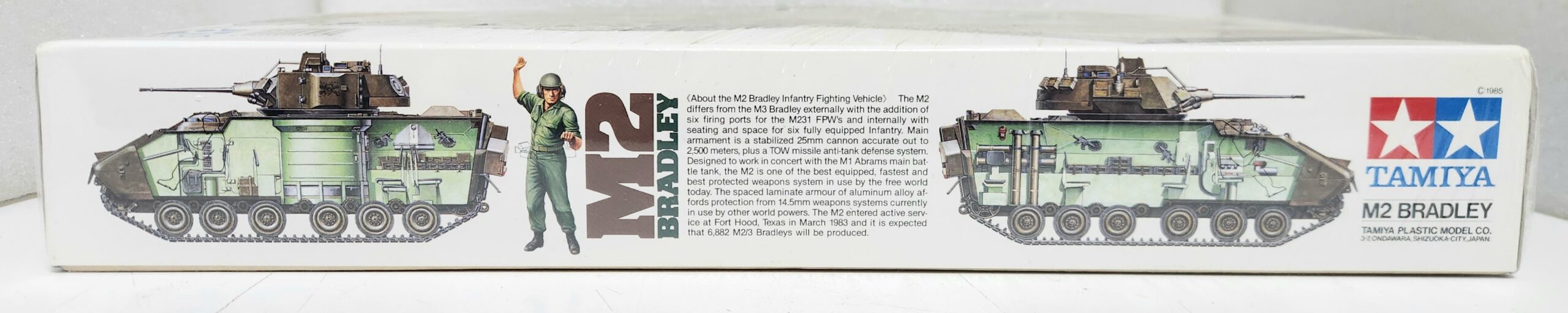 Realistic interior detailing with a lifelike commander figure. Movable turrent, nylon mesh for vane detail, accurate plastic tracks, along with raised or stowed tow missile launcher.